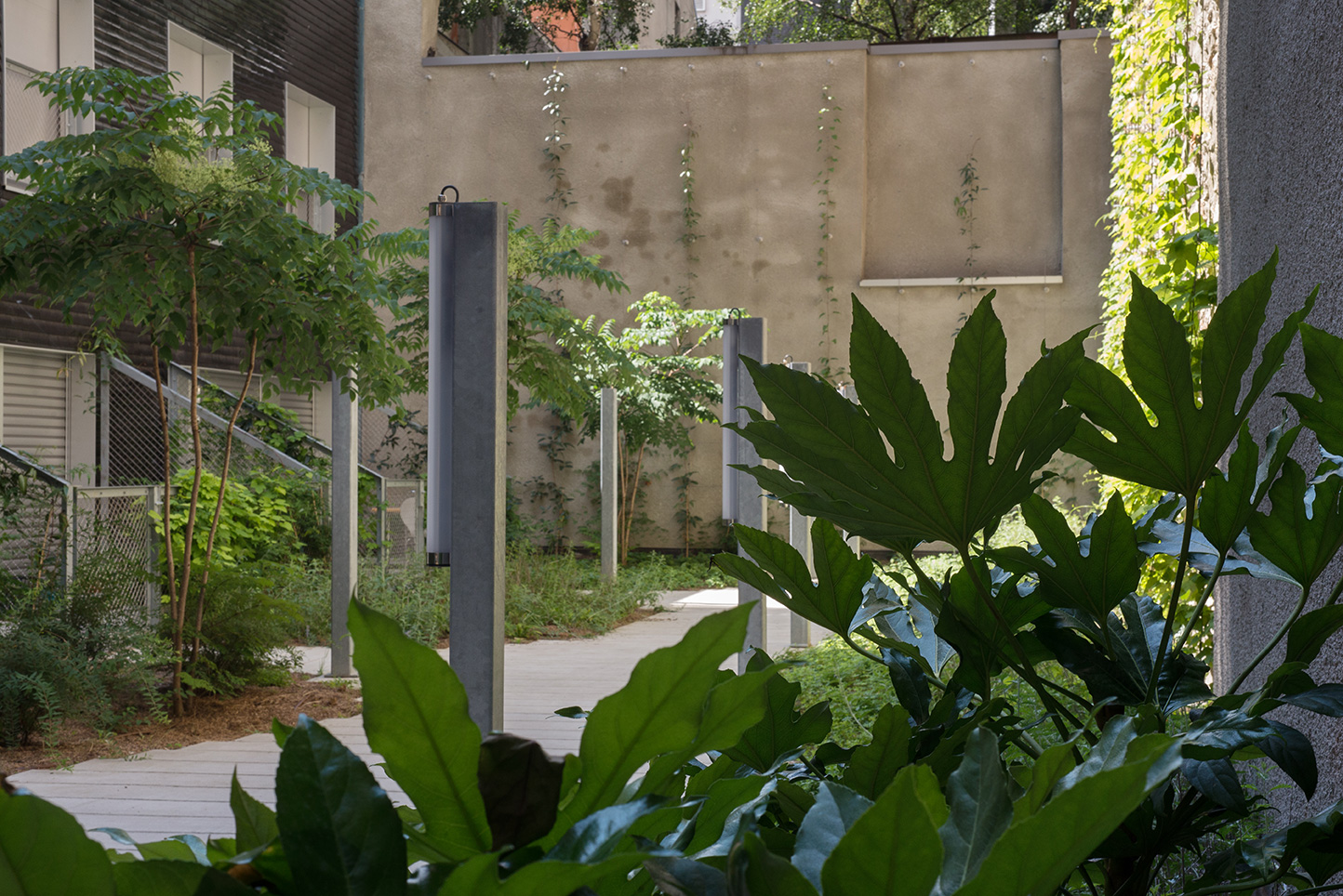 Programme : construction de 20 logements sociaux à Paris et des espaces extérieurs Localisation : Paris (19e) Superficie : 1300 m2 Maître d’ouvrage : Paris Habitat Maître d’œuvre : Paula associée à l’atelier du Pont (architecte mandataire), EVP (BET structure), Delta Fluides (BET fluide), RPO (économiste), PLAN 02 (BET environnement), YOK YOK artiste Calendrier : livraison 2015